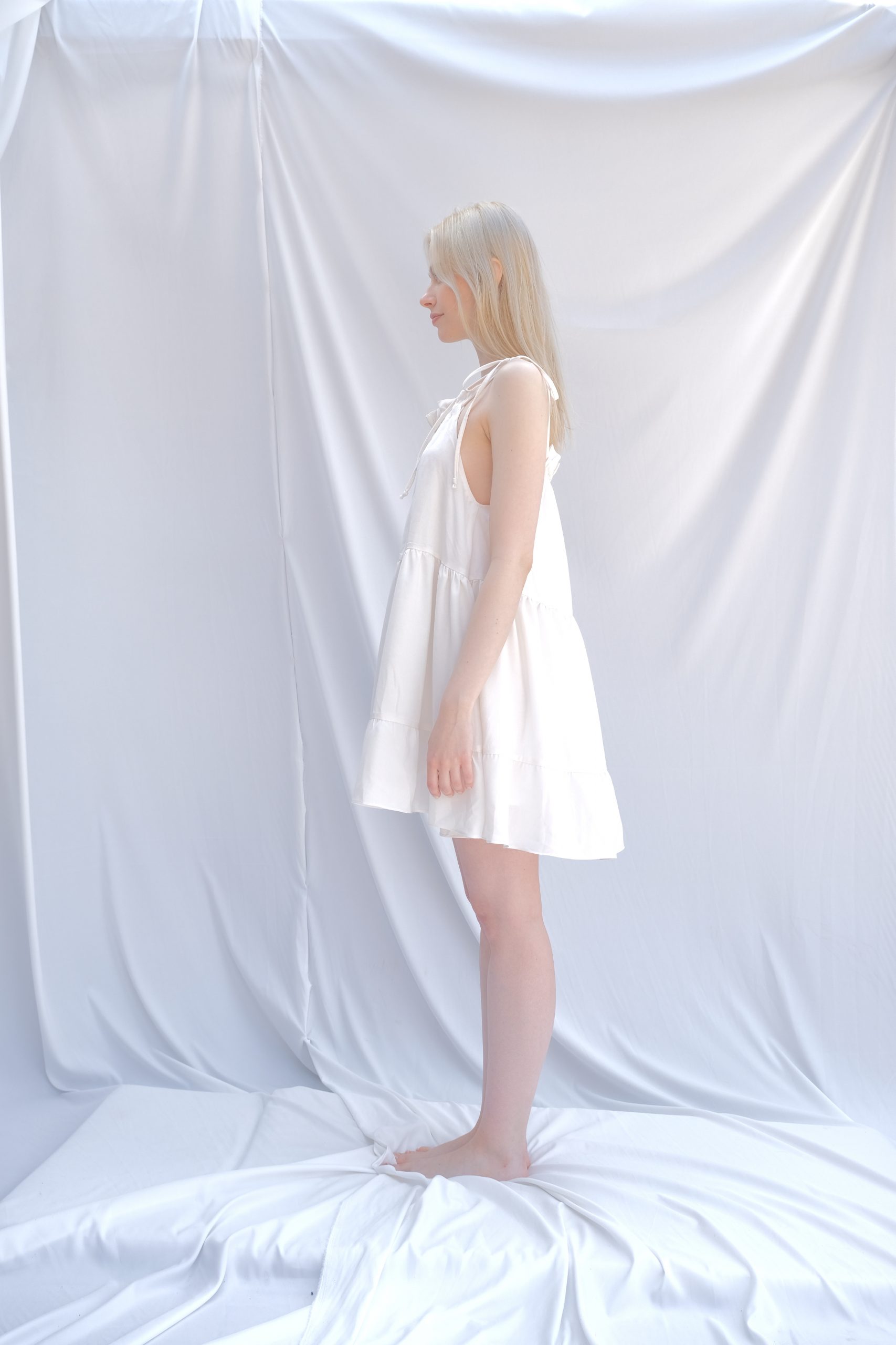 Key Details: Mini length, modern cut, breathable and lightweight texture, fluid drape.