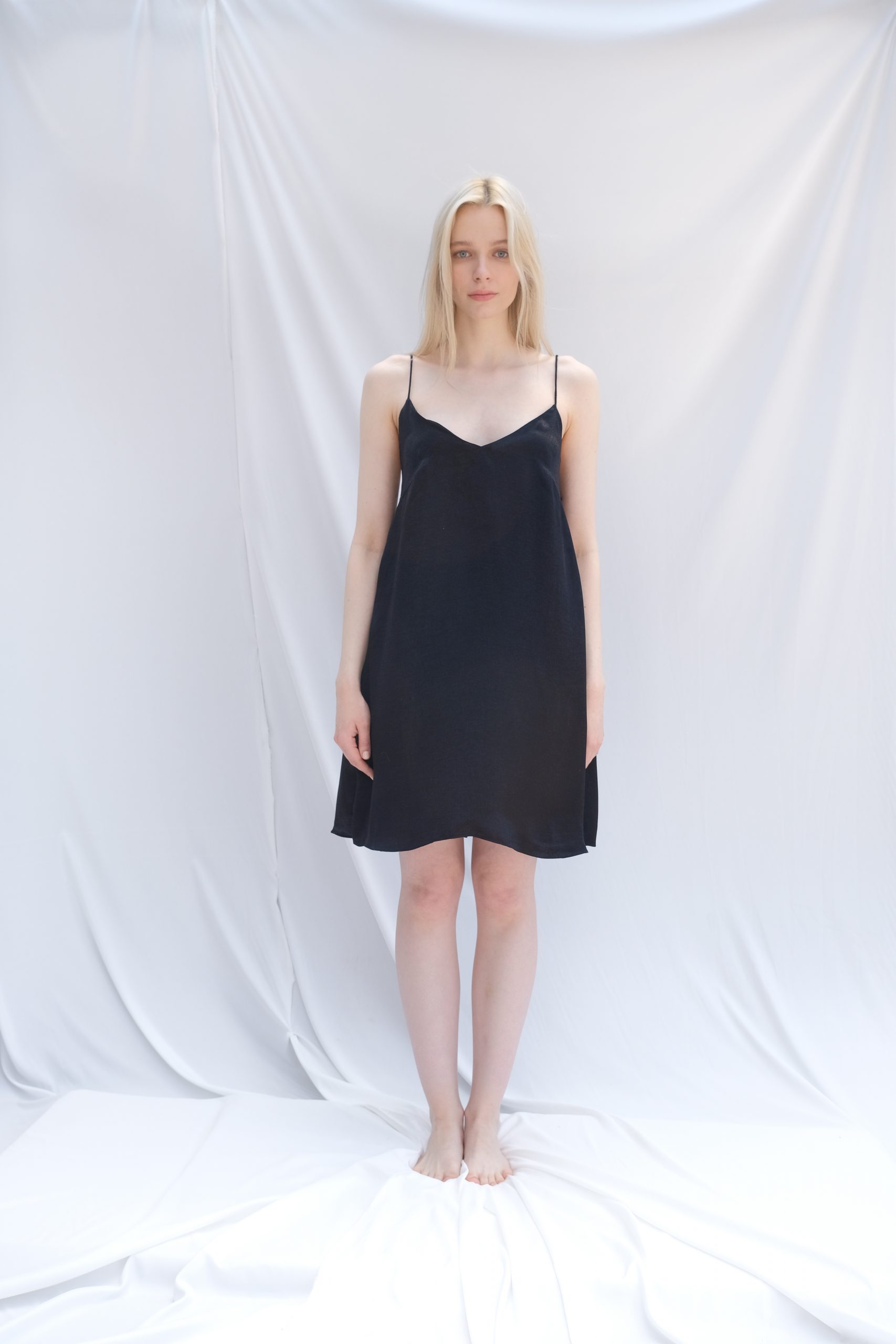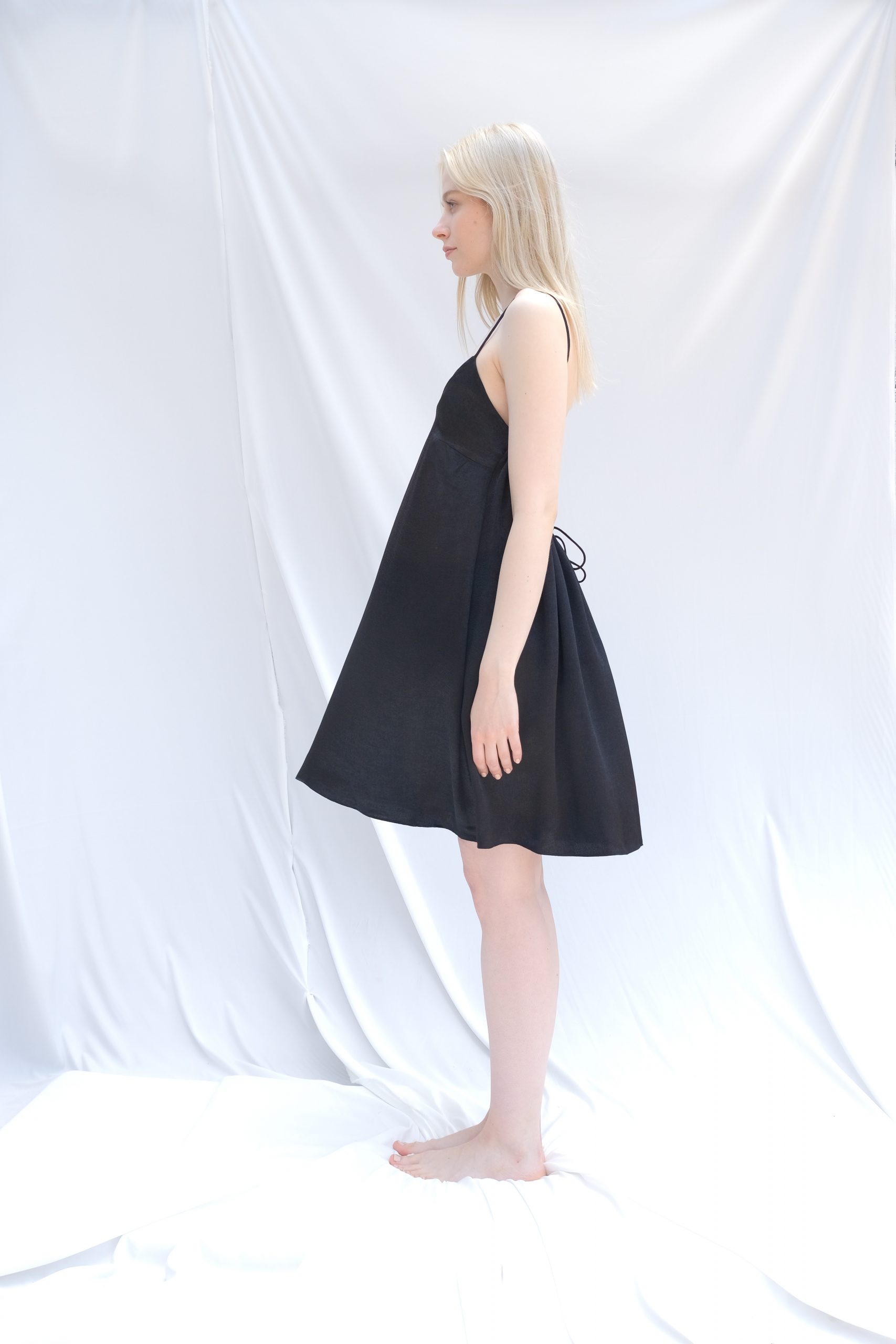 Named after one of the galaxy’s brightest stars, the Betelgeuse Mini offers effortless elegance in a dynamic form. The silky texture provided by the Viscose and Tencel blend, combined with polyester for durability, ensures the dress maintains its graceful shape. The highlight of the design—the gathered back detail and delicate straps—creates a “free and fluid” silhouette perfect for summer evenings.