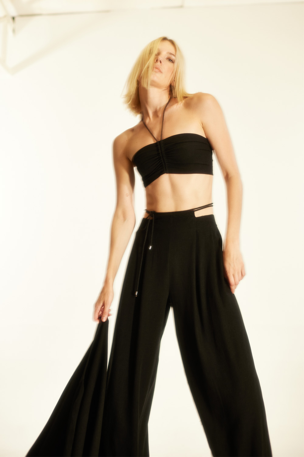 Style Tip: Highlight the waist detailing by pairing the trousers with crop tops or over swimwear for an editorial-inspired beach-to-city look.