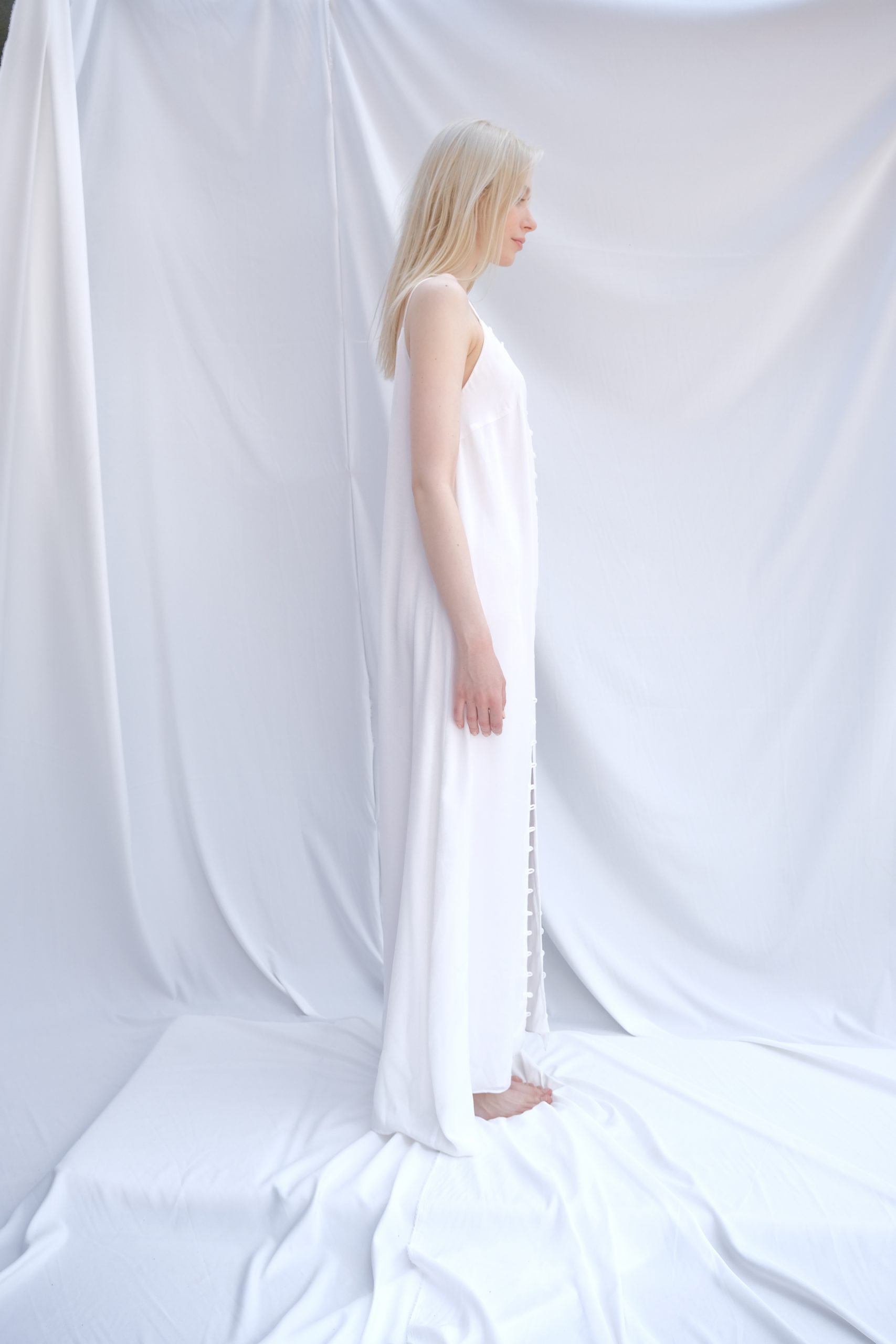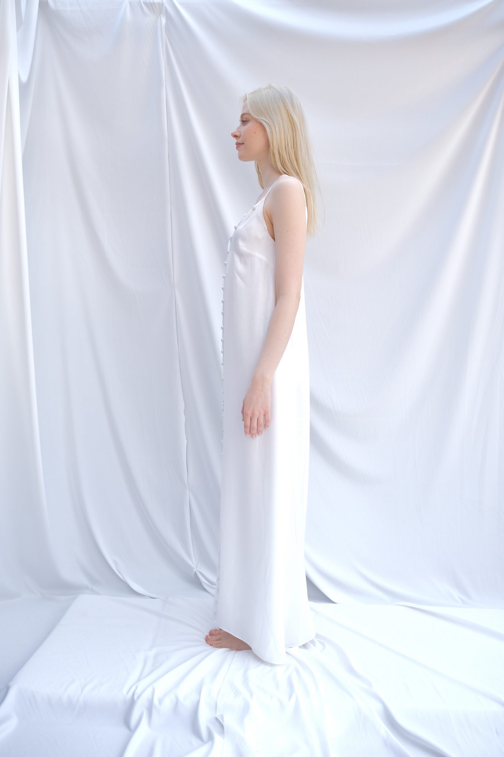Inspired by the brightest star in the sky, the Sirius Dress combines minimalist design with a powerful presence. The breathable and soft texture of Viscose and Tencel, blended with polyester, ensures durability and wrinkle resistance. With its clean lines and a fluid silhouette that gracefully follows the body, Sirius offers an effortless transition from day to night.